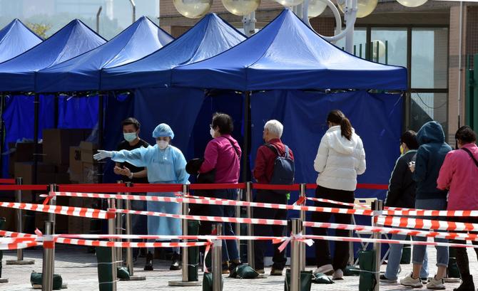 2月27日,在香港青衣流动检测站,市民排队进行核酸检测。新华社记者 卢炳辉 摄