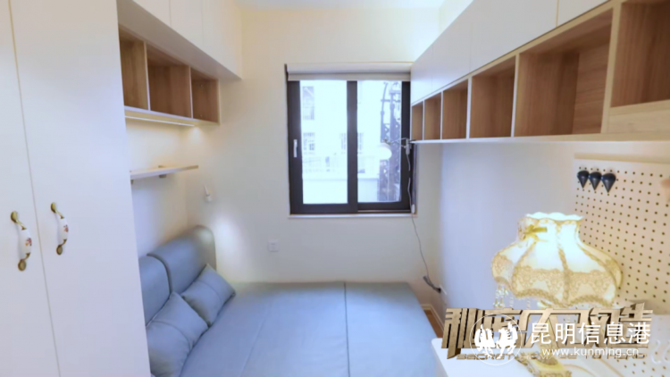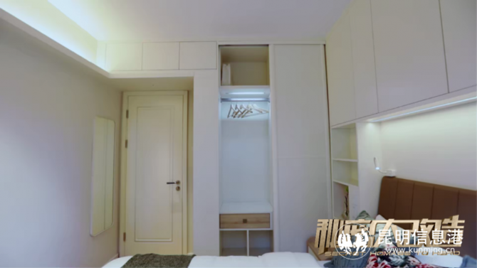 改造前,次卧被当作杂物间。改造后,设计师将次卧设计成多功能房,既能满足王兰兰的学习、休闲需求,又能实现客居功能。新增的大尺寸衣柜和吊柜,也极大增强了储物功能。