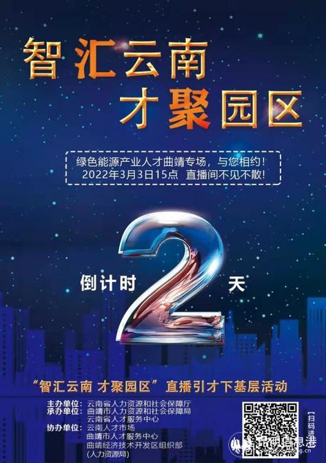 昆明信息港讯 记者江枫 云南省人力资源和社会保障厅主办,曲靖市人力资源和社会保障局、云南省人才服务中心承办的“智汇云南 才聚园区”直播引才下基层——绿色能源产业人才曲靖专场,将于3月3日15点正式开播。