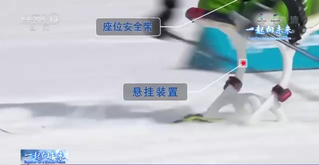 坐式滑雪器椅子包括座位安全带和悬挂装置,设计尽量轻巧,便于减轻运动员负担,减少体力消耗。座位各连接处不能安装弹簧等弹性部件。座位与雪板连接处不可调节,必须使用无弹性绑带将运动员的大腿固定在座位上。