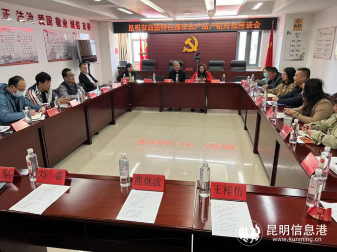 昆明信息港讯 2月28日,昆明市高原特色都市农产品产销对接座谈会在云南省退役军人创业就业孵化基地军创云品中心(简称“军创云品中心”)举行。云南泛亚特色农产品流通行业协会、云南省个体私营经济协会等19家在流通领域占有份额大、影响力大的外销行业协会和公司负责人参会。