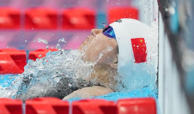⬆️2021年8月30日,在东京残奥会游泳女子50米仰泳S5级决赛中,中国选手卢冬夺得冠军,并打破世界纪录。幼年时卢冬因车祸失去双臂,但在母亲的鼓励下,她不仅掌握了一些生活的技巧,还培养了编织等爱好。在训练和比赛中,她只能用牙咬住毛巾来完成游泳比赛的预备动作,到达终点只能用头去撞池壁。为了提高成绩,她不得不用尽力量冲向终点,忍受冲击池壁的疼痛。新华社记者 才扬 摄