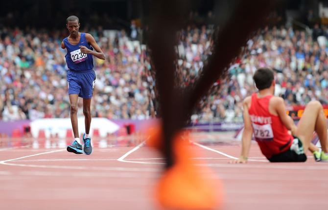 ⬆️2012年9月1日,在伦敦残奥会男子1500米T46级预赛里,侯赛因·阿曼·哈桑在比赛中。他来自非洲的吉布提。2012年伦敦残奥会,是吉布提第一次派代表团参加残奥会。没有右臂的他,开场不久便扭伤了脚,但他忍着疼痛,不顾场边工作人员的劝阻,颤颤巍巍地坚持跑到终点。最后几圈时,其他选手有的在接受采访,有的在喝水休息,可他依旧在只有自己的跑道上奔跑。新华社记者殷刚摄