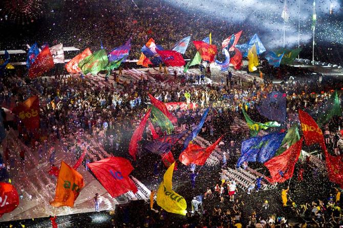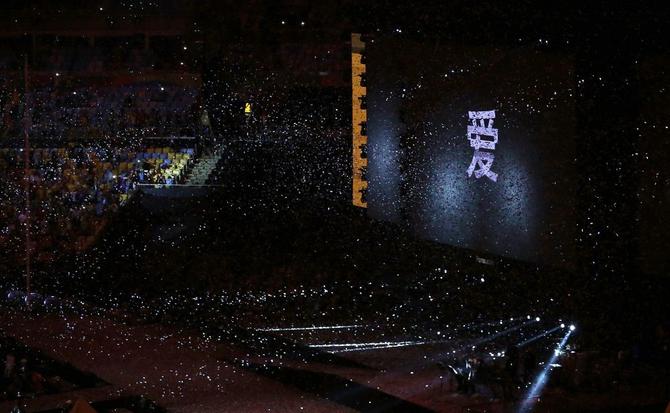 ⬆️2016年9月18日,在巴西里约热内卢举行的第十五届夏季残疾人奥林匹克运动会闭幕式上,大屏幕打出“爱”字。新华社记者李明摄