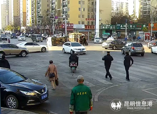 经查,2月28日上午,昆明市公安局官渡分局国际商贸城派出所巡逻民警、辅警二人驾驶警车在辖区正常开展巡逻工作,9时7分,巡逻车途经广居路与君安路交叉路口时遇到车辆侧翻。为不加重现场交通阻碍,民警立即将巡逻警车驶到前方路边停靠,后折返至事故现场,对发生交通事故的司机及相关人员进行救治和帮助。