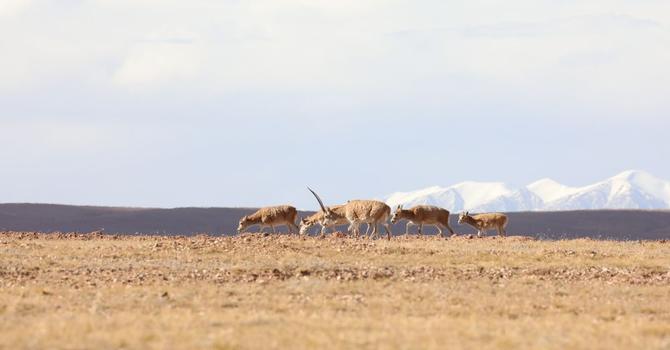 这是2021年9月28日在三江源国家公园拍摄的五只藏羚羊。新华社记者 李占轶 摄