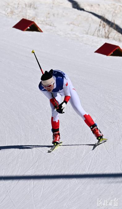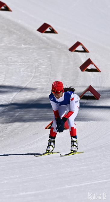 2022年3月5日,中国选手郭雨洁在比赛中。当日,北京2022年冬残奥会残奥冬季两项女子短距离站姿比赛在国家冬季两项中心举行。中国选手郭雨洁夺得金牌。河北日报记者 贾恒 摄