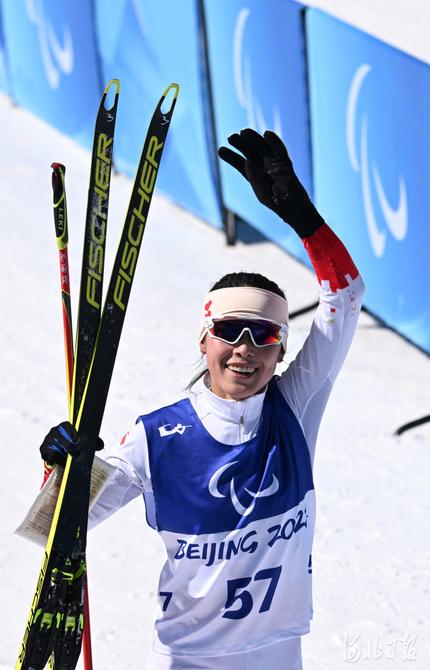 2022年3月5日,中国选手郭雨洁在赛后挥手致意。河北日报记者 贾恒 摄
