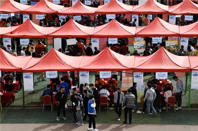 这是青海省2021届高校毕业生春季校园招聘会现场(2021年3月24日摄)。新华社记者 张龙 摄
