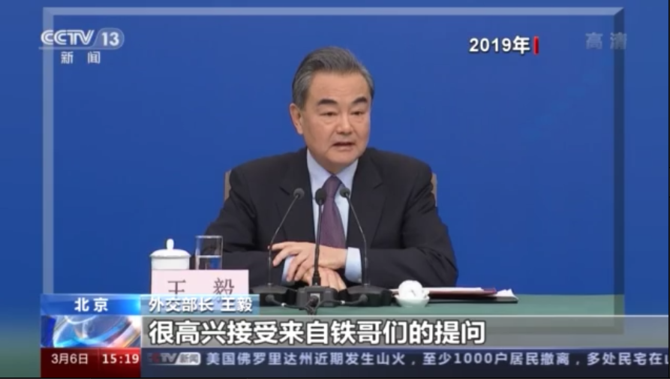 外交部长 王毅:很高兴接受来自“铁哥们”的提问。