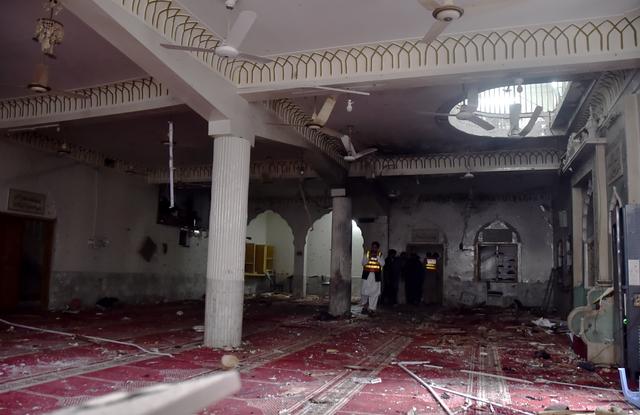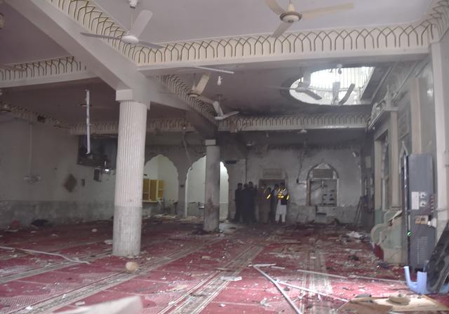3月4日,救援人员在巴基斯坦白沙瓦遭袭清真寺查看受损情况。新华社发(赛义德·艾哈迈德摄)