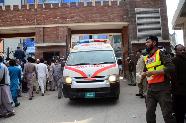 3月4日,在巴基斯坦白沙瓦,救护车载伤者前往医院。新华社发