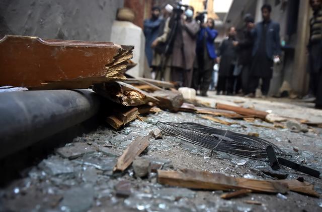 3月4日,人们在巴基斯坦白沙瓦遭袭清真寺查看受损情况。新华社发(赛义德·艾哈迈德摄)