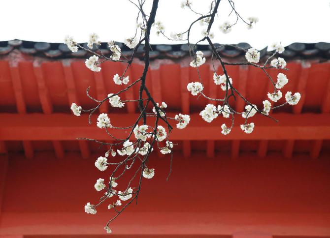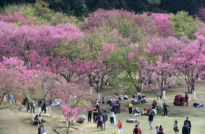 ↑3月6日,游人在南京中山植物园赏花。新华社发(苏阳摄)