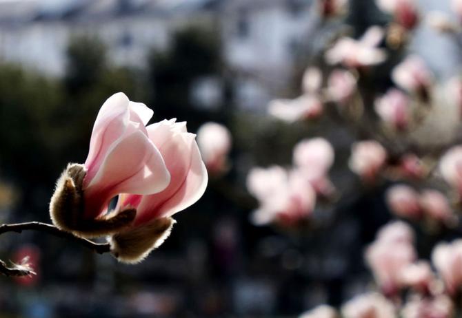 ↑这是3月6日在江苏苏州环古城河旁拍摄的玉兰花。新华社发(杭兴微摄)