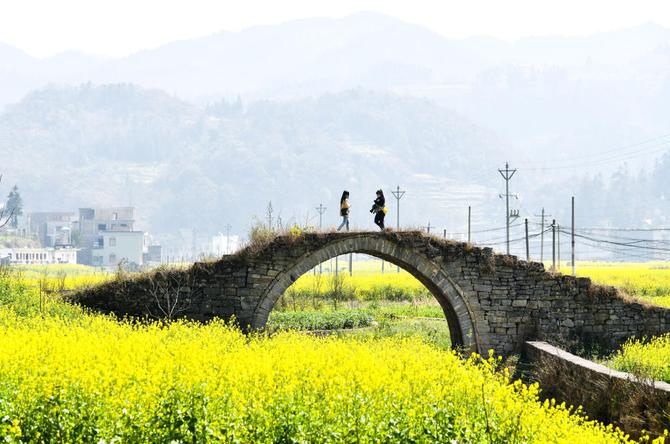 ↑3月7日,人们在贵州省盘州市保田镇阿方村郊游。