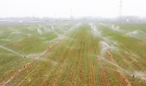 受去年7月中旬洪涝灾害的影响,河南濮阳的小麦播种推迟了20多天。随着天气转暖,当地合作社开足马力为6000亩小麦灌溉浇水,弥补晚播造成的损失。和往年不同,今年的春灌引用了半固定式喷灌头,可以根据小麦需求规律、土壤水分、土壤性质等条件,进行定时定量灌溉,有效降低了麦田湿度、减少小麦病虫害,提高了小麦产量。