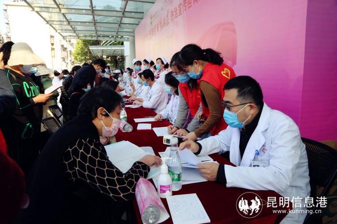 昆明信息港讯 记者刘莹 卢芝珍 在“三八”国际劳动妇女节到来之际,2022年“为了姐妹们的健康与幸福”全国子宫颈癌和乳腺癌防治宣传咨询活动之云南省肿瘤医院、昆明医科大学第三附属医院两癌免费筛查义诊活动在医院门诊楼前举行。