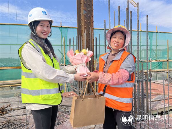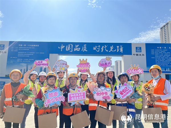 昆明信息港讯 记者劳学丽 通讯员张金栋 牟志君 3月8日,鹏瑞利国际健康商旅城-昆明南站项目工会组织项目女员工走进施工一线开展“三八妇女节”关爱活动。