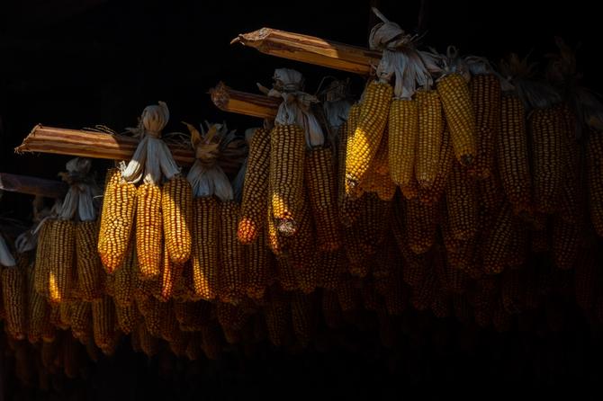 走在拉乍们铺满青石板的乡间小道上,一幅幅精美的彝族墙绘跃然眼前,村舍错落有致,民族风情古朴浓郁。走进彝家门,家家户户堆满了几十袋土豆,房梁上的一串串玉米“门帘”,在阳光下闪着金灿灿的光芒。结合拉乍们村冷凉湿润、光照充足的气候条件,当地群众因地制宜发展农业和乡村旅游,走出了一条脱贫致富与民族团结进步深度融合的民族进步之路。