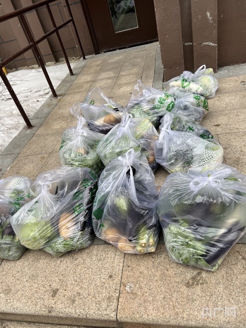 为隔离封闭小区配发蔬菜包(苑竞玮 摄)