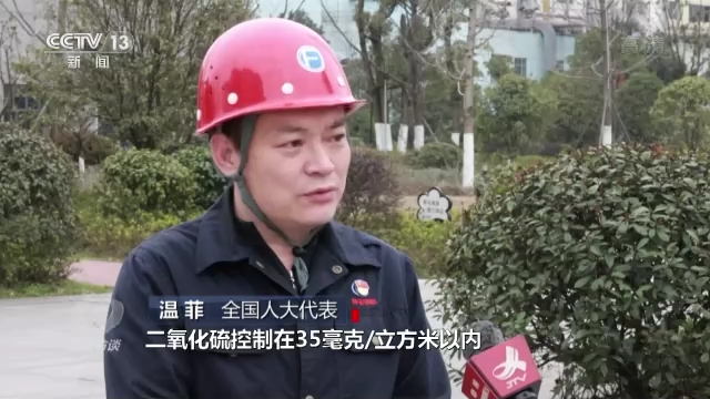 全国人大代表温菲说:“国家标准氮氧化物是300毫克/立方米,二氧化硫是200毫克/立方米,颗粒物是50毫克/立方米。通过我们的改造,在2021年,指标就达到了氮氧化物控制在50毫克/立方米以内,二氧化硫控制在35毫克/立方米以内,颗粒物控制在10毫克/立方米以内,甚至只有5毫克/立方米到6毫克/立方米左右,这个超低排放的指标在全国都是比较先进的。”