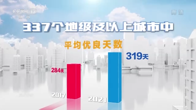 这五年蓝天越来越多,337个地级及以上城市中,平均优良天数从284天上升到319天。地表水的质量变化也“肉眼可见”。随着优良水体的增加,2017年,我们有67.9%的河流能够游泳,而现在接近85%的河流都具备了下水的条件。