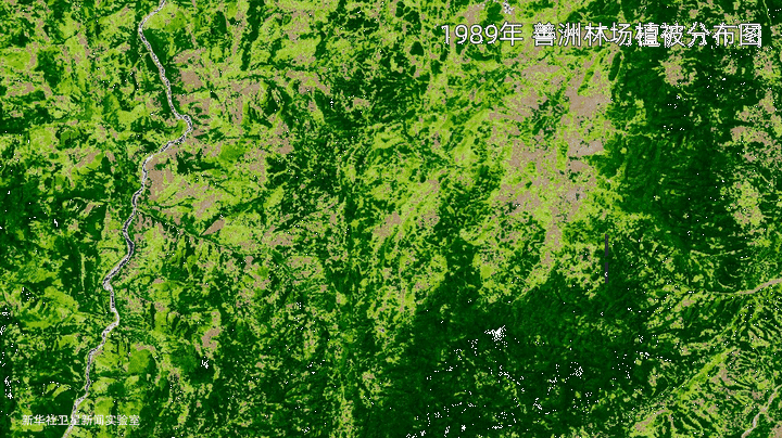 这是云南省保山市施甸县善洲林场1989年和2021年的卫星植被分布图对比。