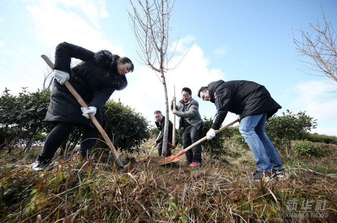 2022年2月7日,贵州省黔东南苗族侗族自治州丹寨县干部群众参加植树活动。