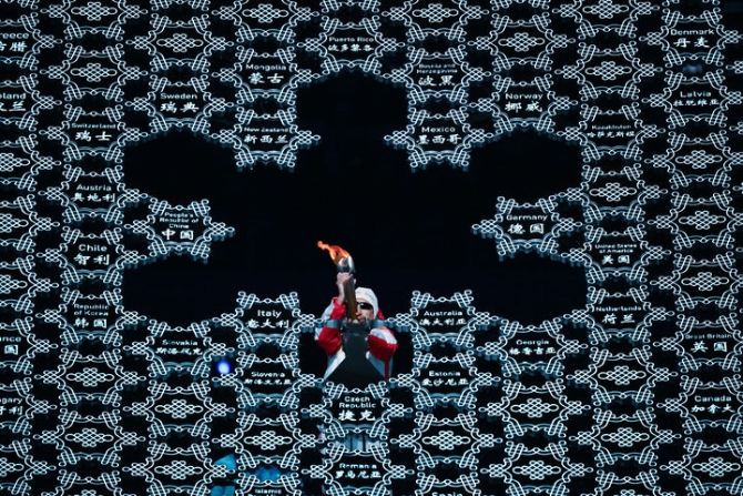 新华社河北崇礼3月12日电 当盲人运动员李端在观众的“加油”声中摸索着将手中火炬插入主火炬台“大雪花”中之时,世界正式进入了北京冬残奥会时间。