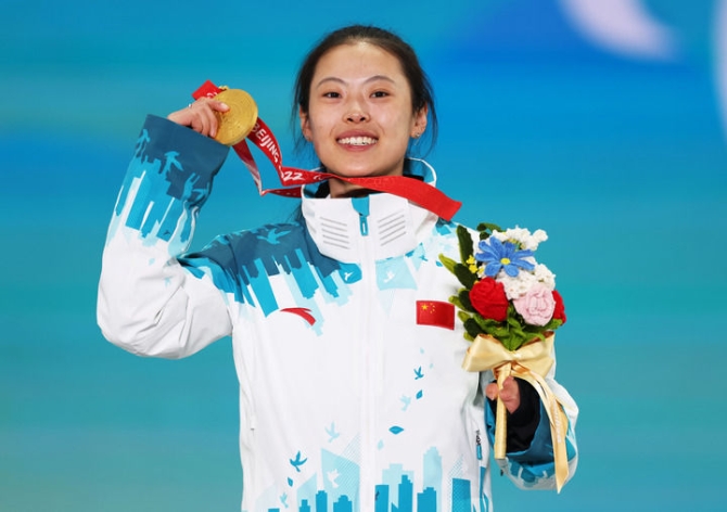 3月6日,获得冠军的中国选手郭雨洁在奖牌颁发仪式上。新华社记者贾浩成摄