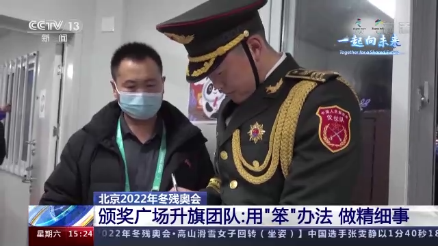 张家口颁奖广场升旗经理 韩松:经过比较精确的计算,从升旗手出发到会旗挂旗完毕是43秒,我们都是按秒数来计算,每一个环节都是环环相扣。升旗操作装置看不到旗台(情况),所以我们完全是靠口令传达相互之间的信息,才能达到紧密配合,口令就改了12版。我觉得到目前为止,我们是比较圆满完成了这个任务。在这么一件大事里,我们能够很好完成任务,我觉得对于我们每个人来讲,都是不平凡的经历。