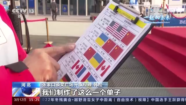 张家口颁奖广场升旗经理 韩松:我们制作了这么一个单子,把所有的国旗、运动项目、冠亚军等信息都展示在一张纸上,一层一层每个环节都要进行核对。国旗从旗库出来以后,要检查有没有污渍,有没有抽丝,有没有破损,然后再把国旗进行熨烫。因为升旗是运动员最高光的时刻,也是体现一种对国家的尊重,国旗一定要体现最完美的效果。