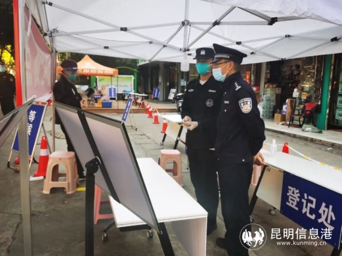昆明信息港讯 记者合宇聪 3月7日,昆明出现2例新冠肺炎核酸检测初筛阳性病例后,昆明市公安局五华分局闻令而动、全警动员,誓用“警察蓝”守护万千家。