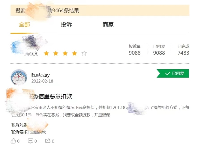 记者发现,在“黑猫投诉”平台,该网络保险平台迄今已有9000多条投诉,“老人在不明白的情况下被误导投保”等成为常见的投诉标题。