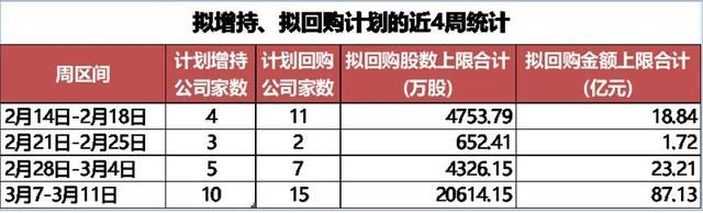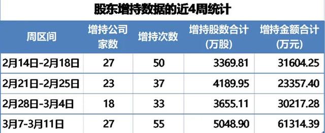 从增持计划来看,上周(3月7-3月11日)有10家公司推出了增持计划,较前一周5家直接翻倍。