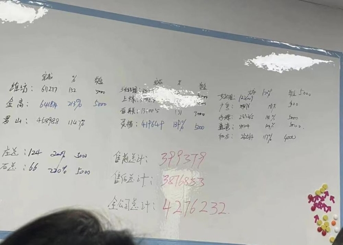 当销售成为首要任务,门店每月都要在工作群内上报销售任务和完成进度。记者获得的名为“汉方同仁管理群”的工作群聊天截图显示,每个门店的平均月度销售指标约为30万元。