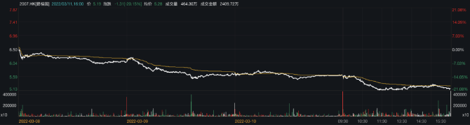 股票方面,3月11日,碧桂园地产所属港股上市公司碧桂园控股有限公司(债券简称碧桂园,股票代码02007)股价下跌7.82%,近四个交易日(3月8日-11日)股价连续下跌,累计跌幅为20.15%。