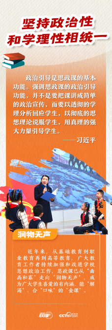 习近平总书记指出,推动思想政治理论课改革创新,要不断增强思政课的思想性、理论性和亲和力、针对性,并提出“八个相统一”教学要求。“八个相统一”言简意赅,深刻精辟,为推进新时代思政课建设指明了方向。