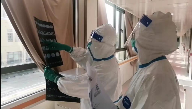 医生正在对患者CT影像进行讨论评估(受访单位供图)