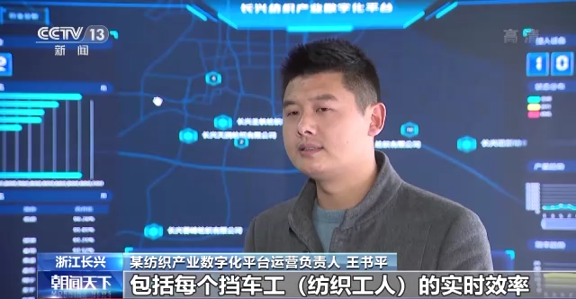某纺织产业数字化平台运营负责人 王书平:我们在每台织机上会加一个数据采集终端,织机的生产数据实时上报。可以看到每台(织机)和每个工人的实时效率,最终帮企业管理者实现织造环节的数字化生产。