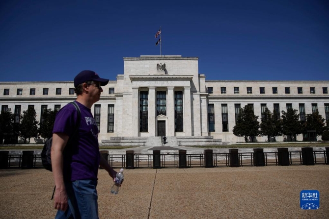 3月16日,在美国首都华盛顿,一名男子从美联储大楼前走过。新华社发(沈霆 摄)