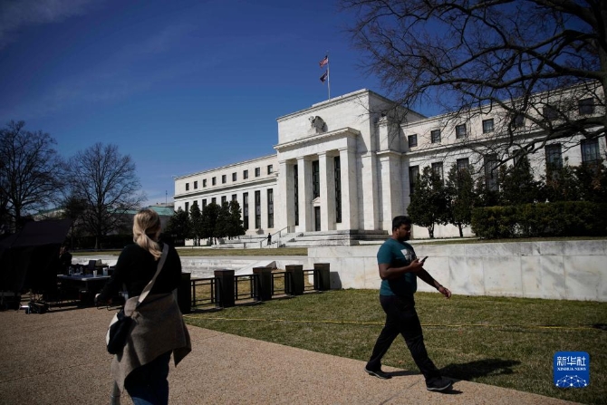 3月16日,在美国首都华盛顿,人们从美联储大楼前走过。新华社发(沈霆 摄)