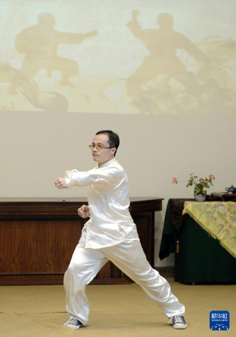 3月14日,在巴基斯坦伊斯兰堡,表演者在巴基斯坦国立现代语言大学国际文化节开幕式上展示中国武术。新华社发(艾哈迈德·卡迈勒摄)