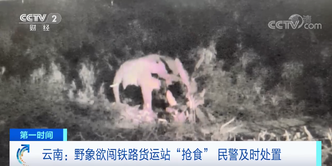 云南:野象欲闯铁路货运站“抢食” 民警及时处置