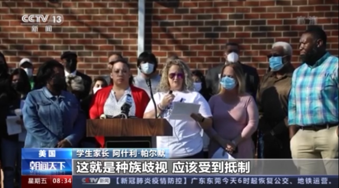 学生家长 阿什利·帕尔默:这不是我们第一次面对针对我们孩子的种族主义行为了,这不是什么多元化与包容性,也不是(种族)平等,这就是种族歧视,应该受到抵制。