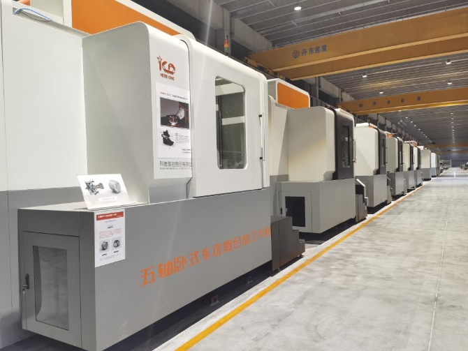 在大连光洋科技集团25万平方米恒温恒湿地藏式生产车间,一台台“大块头”高端机床整齐排列,其中,一台5米多高的高端五轴卧式车铣复合加工中心,十分引人注目。