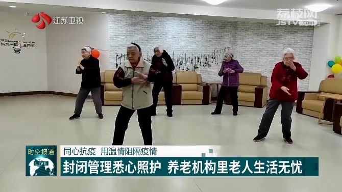 泰州市社会福利中心入住老人冯奶奶通过视频通话告诉家人,自己这边挺好的,请家人们放心。目前,泰州市社会福利中心共有入住老人155人。除了每天对院内各项设施进行2次消毒,中心还建立健康监测机制,封闭管理期间,每周进行三次核酸检测。在苏州太仓颐悦护理院,老人们正在打太极、练书法。封闭管理以来,护理院开展了丰富多彩的活动,让老人们隔离不隔爱。