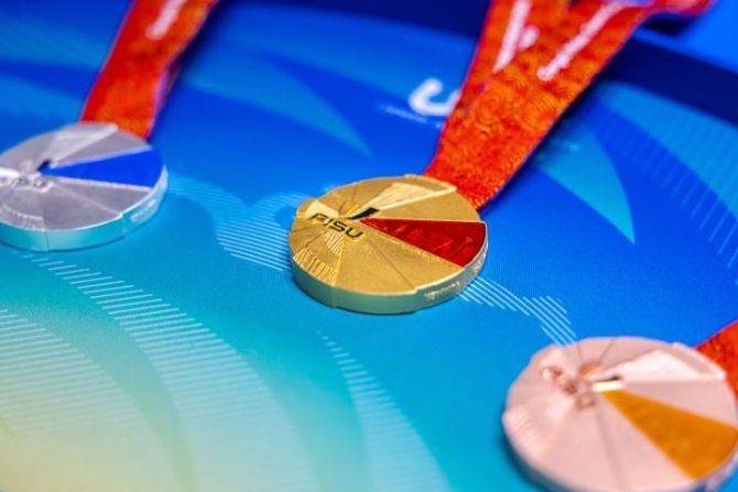 据介绍,成都大运会奖牌“蓉光”取自成都的简称“蓉”,同时寓有“荣光”之意。整体创意以“五洲融合、天府文化、赛事标识系统、成都成就梦想”为核心,在展现体育精神、呈现古蜀文化、彰显赛事名城美好愿景的同时,强调本届赛会特色,着重表达新时代天府文化内涵。