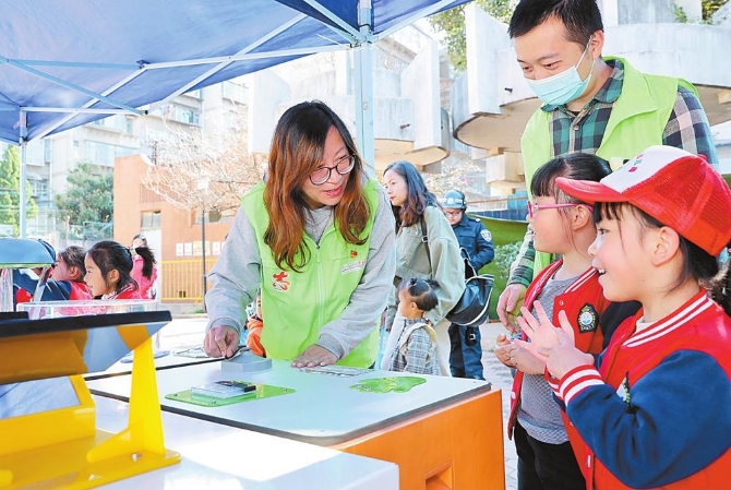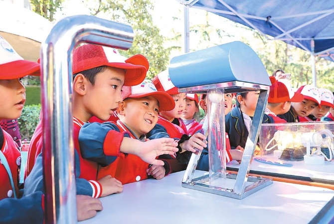 近日,昆明市西山区科学技术协会利用流动微型科技馆,把科普送进社区。动植物标本、新能源展示以及互动性强的科学小实验和VR体验,引得孩子们前来探寻科学的奥秘。(云南日报 记者杨峥 黄兴能 摄)